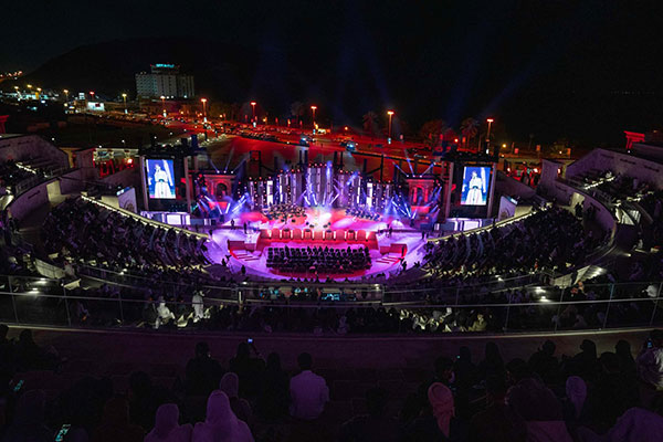 احتفالات رأس السنة تزدان في مدرج خورفكان وهو يستقبل العام الجديد بصوت ابن خورفكان، الجبل حسين الجسمي، ترافقه صاحبة الصوت العذب، أصيل هميم، يوم السبت 31 ديسمبر 2022.