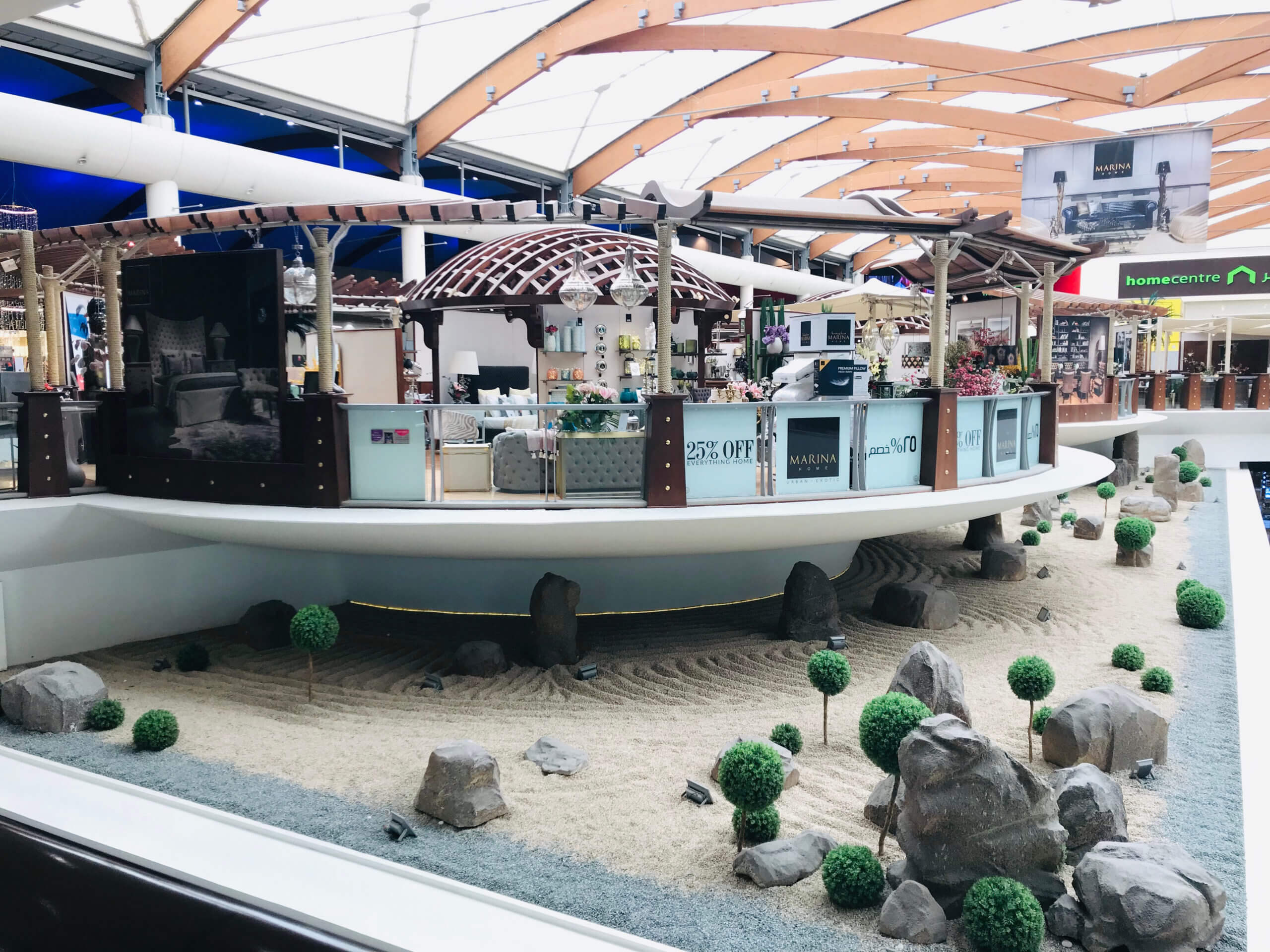 يضم المركز أكثر من 150 متجراً يقدم كافة أنواع الموضة والأزياء والإكسسوارات والالكترونيات وألعاب الأطفال، فضلاً عن ساحة كبيرة من الطعام والمقاهي.